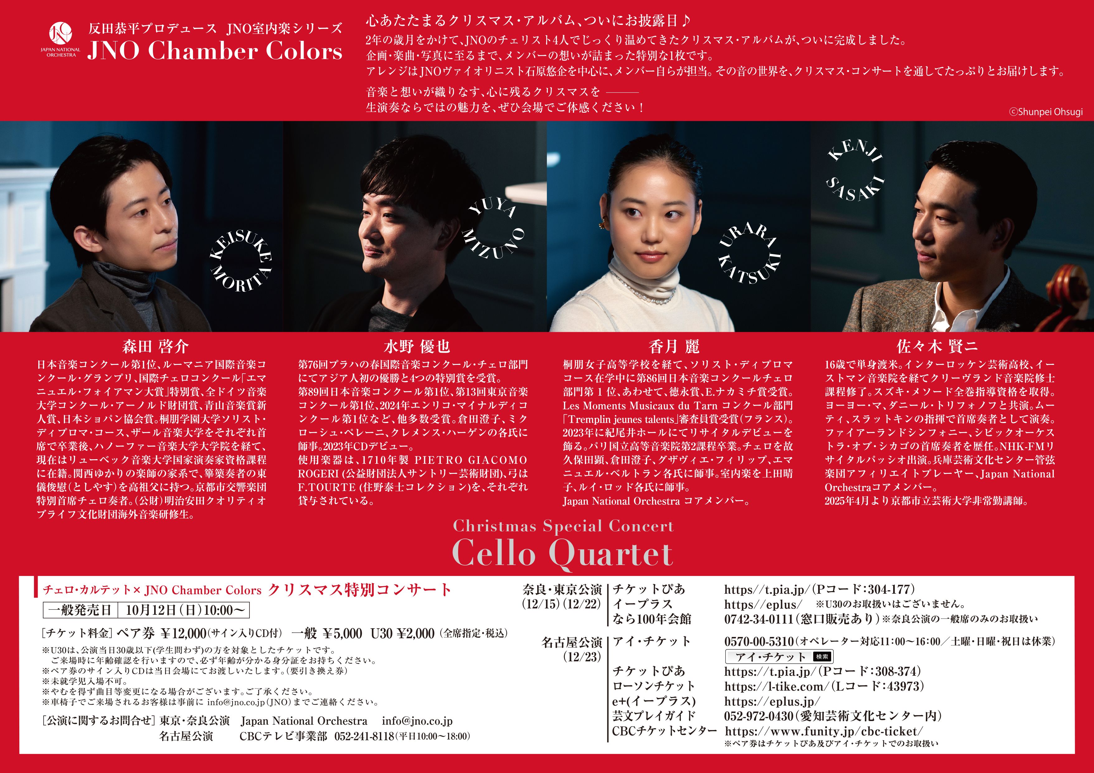 チェロ・カルテット× JNO Chamber Colors クリスマス特別コンサート