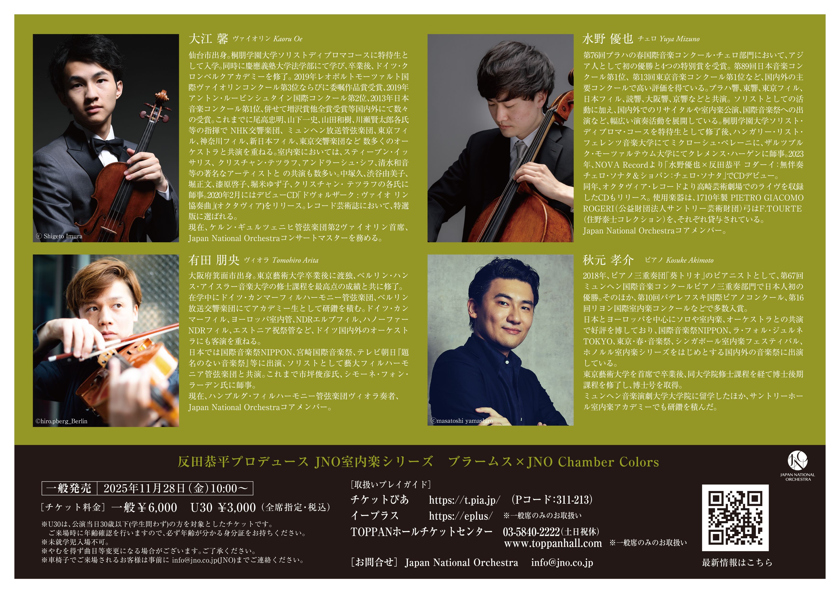 ブラームス × JNO Chamber Colors ―ヴァイオリン、ヴィオラ、チェロで紡ぐブラームスのソナタ―
