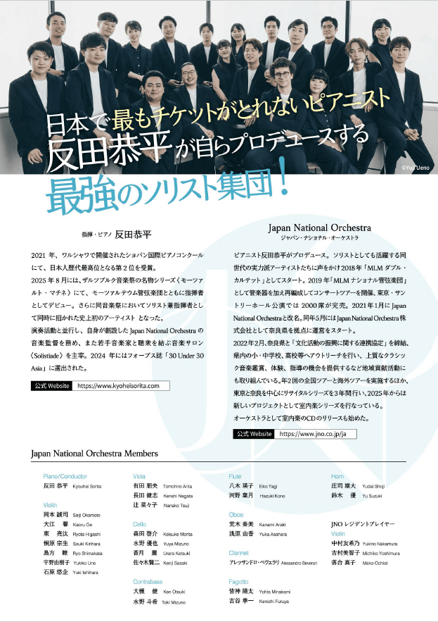指揮:反田恭平 管弦楽:Japan National Orchestra *本ツアーにおいて、反田恭平は指揮に専念し、ピアノを弾かない場合もございます